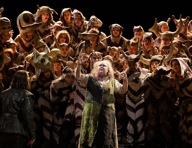 Adele Thomas’ production lights up the stage with ‘anarchic imagination’ (Guardian), combining Hieronymus Bosch-inspired mayhem and medieval lore. Three unique casts are led by conductors Giacomo Sagripanti and Carlo Rizzi to bring Verdi’s dark and disturbing tale to energetic life.