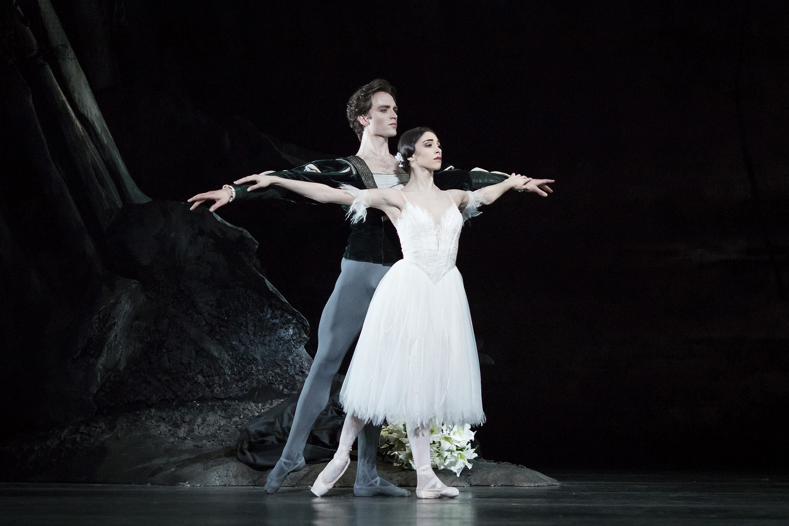The Wilis now seek out Albrecht and, when Myrtha commands him to dance, Giselle urges him to the safety of the cross; but he is powerless when Myrtha orders Giselle to entice him away by dancing with him. Giselle tries to sustain him, but as the night wears on he becomes weaker and weaker. Just as he is about to die, dawn breaks. Daylight destroys the Wilis’ power and the ghostly dancers fade away. Giselle, whose love has transcended death, returns to her grave, her spirit freed from the power of the Wilis, leaving Albrecht sorrowing and alone.