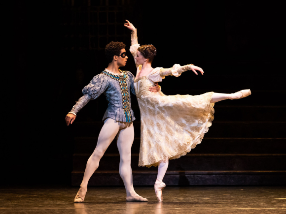 The most famous pas de deux in the ballet Romeo and Juliet is the Balcony pas de deux at the end of Act I. Romeo and Juliet meet at the balcony after having fallen in love at the ball and fervently profess their love to each other. MacMillan transforms Shakespeare’s love scene – where the famous ‘wherefore art thou, Romeo?’ line comes from – into an impassioned duet full of sweeping lifts and expansive jumps, depicting the ardent love between the young couple.