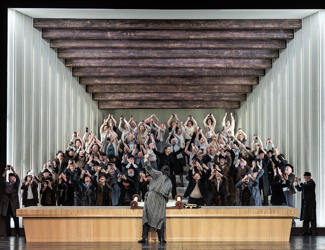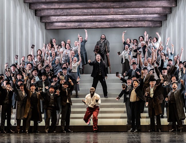 Grand opera is a type of opera which emerged in France towards the end of the 19th century. As theatre technology became more sophisticated, opera productions became more extravagant, with monumental sets, huge forces and opulent costumes. Although typically characterised by a 5-act structure, Samson et Dalila has only three Acts. Yet what it lacks in running time, it makes up for in scale: the opera has a huge chorus and orchestra, and the Act III Bacchanale would have been a showcase for a troupe of ballet dancers. In Richard Jones’ production, professional dancers are joined by the Royal Opera Chorus in a glittering line-dance before the idol of Dagon.