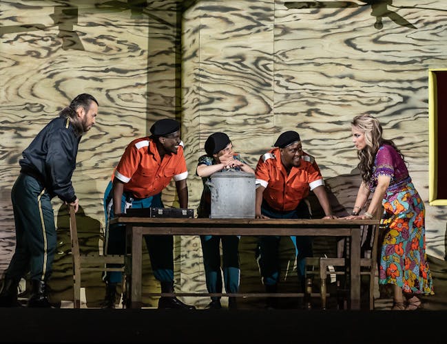 The story is set in 1150 B.C., in Gaza. The biblical story can be found in the Old Testament, chapters 13-16 in the Book of Judges. Richard Jones’ production adds a vibrant, modern twist to the story, with colourful sets portraying the heat and sensuality of the story, and glitzy, glamorous costumes for the Philistines.